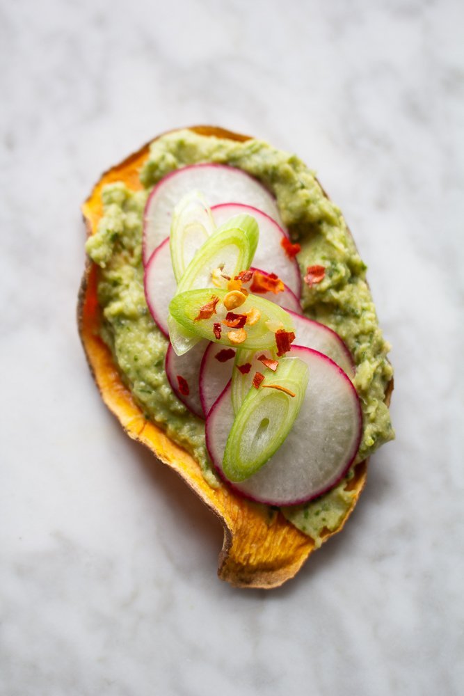 Spring Sweet Potato Toasts with Herb Hummus